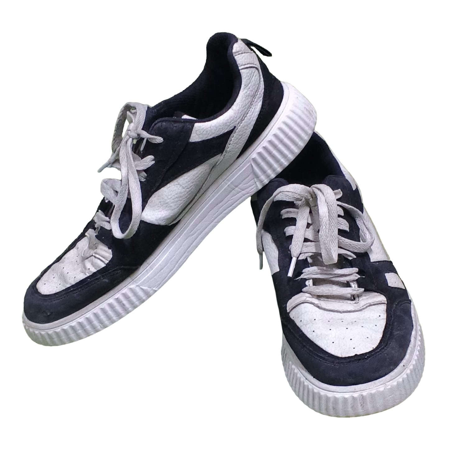 Pre-Loved UNISEX Black & White Color Block Sneakers w/ Ribbed Platform Sole